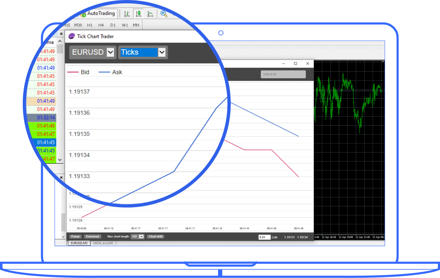 It comes in 5 different styles, namely Tick charts, Tick speed, Timed charts, Tick candles, "Versus" charts which allow quick trading and provides quick entry and exit based on FIFO basis.
